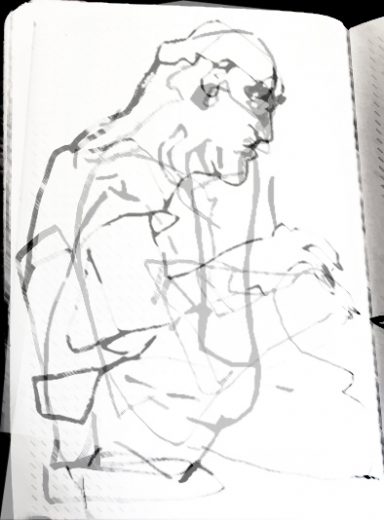 Überblendungen 6 : Mann am Computer (tägliches Zeichnen, blind)