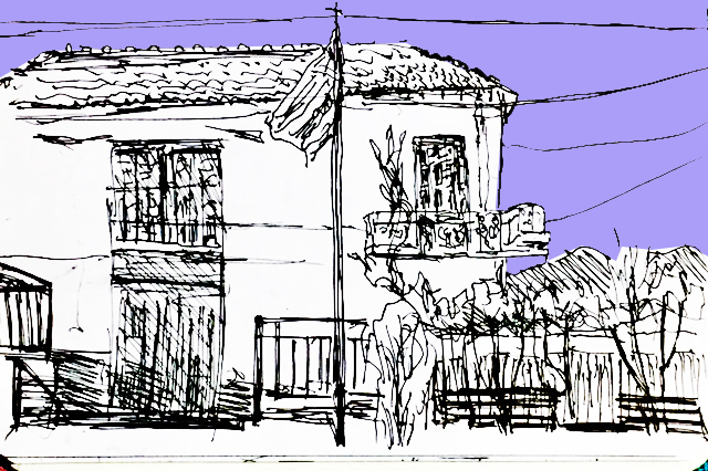 Gezeichnet habe ich, im Schatten auf dem Vorplatz der großen Hauptkirche (kannst du hier sehen) sitzend , ein altes leerstehendes Haus …