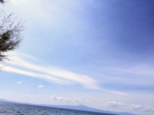 Nun, heute reisen wir, wenn auch nur bis Athen. Die Wolke erschien uns gestern Mittag, als fein gerippter Himmelsfisch, schiffend im unendlichen Blau.