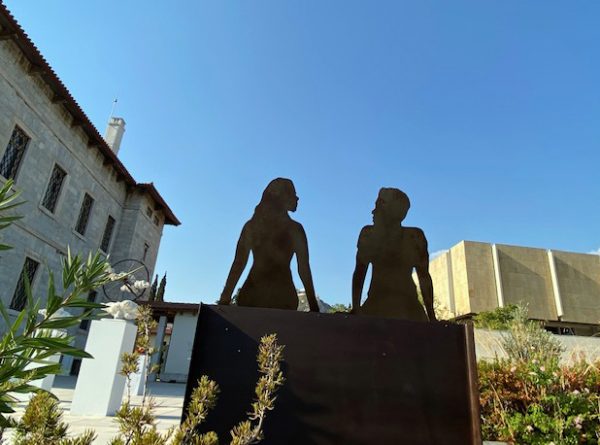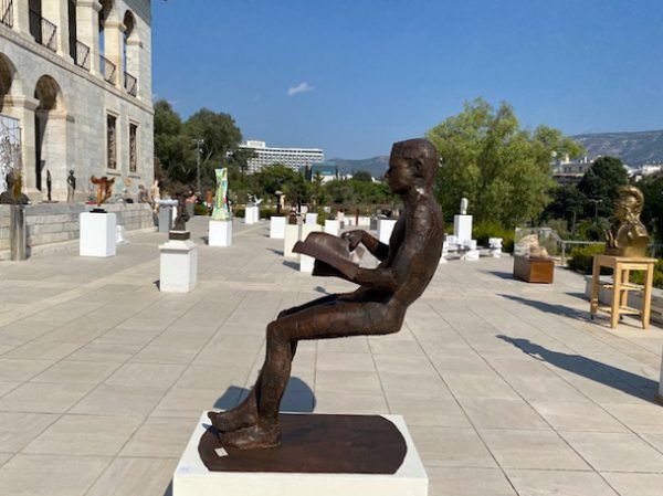 Ob dir, liebe Sonja, nun die nachfolgend gezeigten Skulpturen schöner singen, weiß ich nicht. Ihre Präsentation ist weniger elegant, und sie gleichen eher dem, was man als Bildhauerei zu bezeichnen pflegte. Sie werden dieser Tage im Garten des Byzantinischen Museums gezeigt. Es handelt ich um die jährliche Ausstellung der Bildhauer, die im „Verband Bildender Künstler Griechenlands, EETE“ organisiert sind (ich gehöre zur Abteilung Malerei).