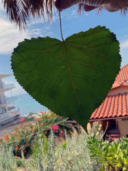 Das erste herabgefallene Blatt des Maulbeerbaums. Ich hob es auf und hielt es gegen das Licht. Da erst da ich den fein gezackten Rand des herzförmigen Blattes.