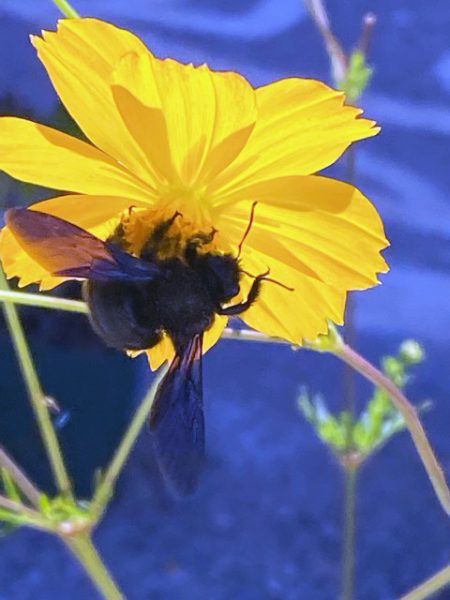 Gut die Holzbiene an der gelben Blüte erwischt 🙂