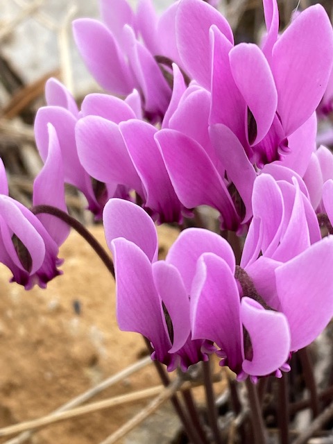 Der Regen treibt aus dem Boden die Blüten hervor, die in Wurzeln, Knollen und Zwiebeln die heiße Zeit überstanden: Meerzwiebeln, Kyklamen, Lilien und andere namenlosen Schönheiten …