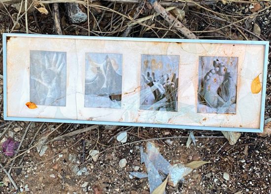 Zunächst drängt sich einem eine traurige Geschichte auf. Dann aber denkt man an die Vielfalt der Möglichkeiten: ist die ehemalige Bildinhaberin vielleicht einfach nur Hebamme oder sonst mit Kindern beruflich verbunden und wurden die zweidimensionalen lieben Kleinen zu viel? Oder war’s eine überlebte Erinnerung an die eigene Kindheit?