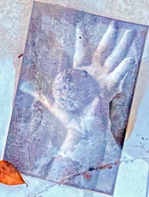 Zu sehen gab es: eine gespreizte Hand, die sich gegen etwas Rundes streckt. Die Hand ist weich, wohl die eines Kindes?