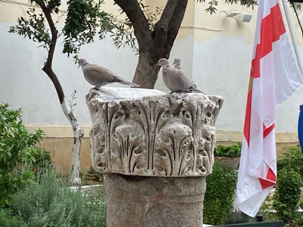 Dass all die Kirchen unterhalb der Akropolis auf antiken Fundamenten stehen und oft genug Spolien eingebaut wurden, versteht sich von selbst. Aber nicht immer wird man so deutlich mit der Nase drauf gestoßen wie in diesem Klosterhof, dem ich danach einen Besuch abstattete.