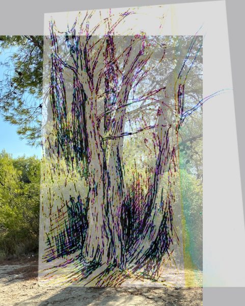 Und ein Ergebnis meiner Überblendungsversuche. Mir hat sich die eher gleichgültige Baumgruppe nun, da ich sie gezeichnet habe, tief eingeprägt.