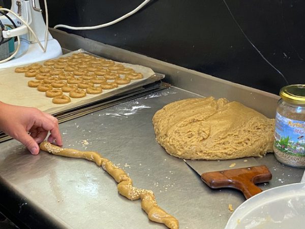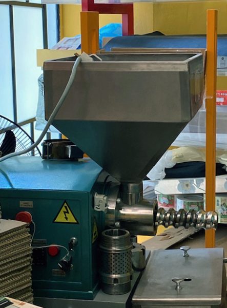 Heute habe ich zwei kleine Werkstätten aufgesucht, die von befreundeten Frauen betrieben werden, um ihren Lebensunterhalt zu verdienen. Ich fotografierte nicht, um etwas besonders Schönes besonders schön abzulichten, sondern einfach, um es „festzuhalten“: Arbeitsräume, Maschinen, Produkte. Auch Menschen fotografierte ich: Hände beim Ausrollen des zuvor gekneteten Teigs für die Kekse, um ein Beispiel zu zeigen.