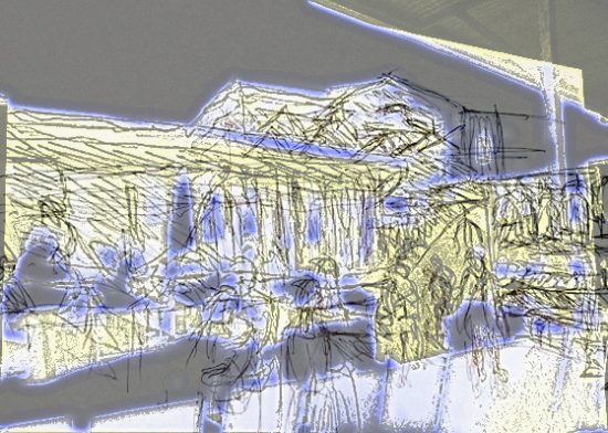 Ja, worum geht es mir damit? Solche Fragen finde ich sehr anregend, denn sicher bin ich mir selten, warum ich etwas tue. Ich versuchte eine Antwort: „Lieber Jürgen, danke für deinen wertschätzenden Kommentar. Wenn die Überblendungen all das vermögen, was du sagst, ist ihr Dasein schon gerechtfertigt. Was ich selbst damit suche? Danke für diese Nachfrage. Meine Gedanken kreisen sehr um das Thema „Realität und Täuschung“. Verlust von Realitätsvertrauen – Täuschung als neue Realität. Das Foto ist banale Ablichtung, die Zeichnung ehrliches Bemühen. Die Überblendung vermischt beide Elemente und erzeugt mehrschichtige, irrlichternde,unberührbare Wirklichkeiten.“