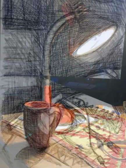 Nächtliche Lampe (Zeichnung und Überblendung)