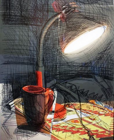 Nächtliche Lampe (Zeichnung und Überblendung)