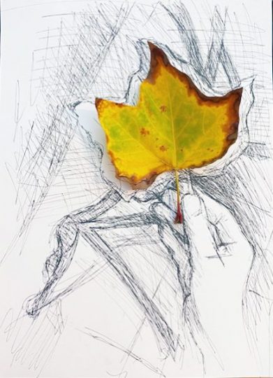 Alles dreht sich ums Blatt (tägliches Zeichnen, Fotografie, Collage, Überblendung)