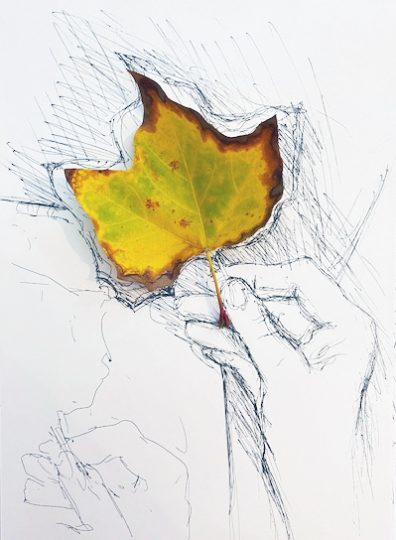 Alles dreht sich ums Blatt (tägliches Zeichnen, Fotografie, Collage, Überblendung)