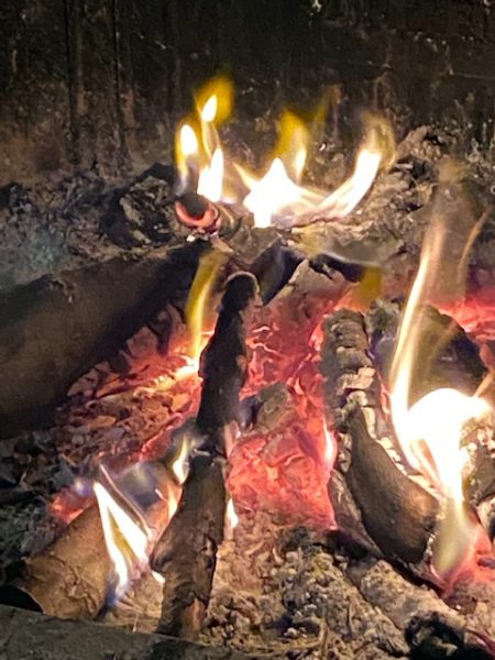Hinter Marias rötlichem Gewand verbirgt sich ein feuriges Herz – so dachte ich. Als ich das Türchen öffnete, schlug mir die Glut des Kaminfeuers entgegen. Die Flammen aber bildeten eine Krone mit einem funkelnden Stern im Zentrum