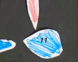Wenig verspricht das Türchen für den 11. Dezember. Nichts als ein blauer Fleck unter den rosa Füßen des Schafs mit dem Sonnenaufgangsköpfchen? Was wird sich dahinter schon groß verbergen.