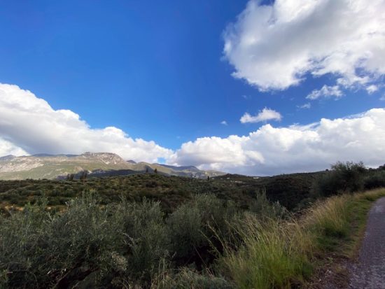 Nun verlasse ich den Asphalt und wandere bequem auf einem landwirtschaftlichen Erschließungsweg, den der Olivenbauer angelegt hat, um seine Bäume zu erreichen.