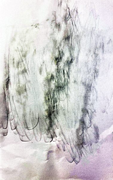 Die tonige Wand zieht mich an. Seltsame Strukturen zeigen sich auf der grau-ockrigen Oberfläche. Ich versuche, sie mit dem Bleistift aufs Papier durchzuzeichnen (frottage nennt man das Verfahren), aber es wird nicht Rechtes daraus, weil die Wand zu weich und der Bleistift zu hart ist. Aber den Versuch war es wert.