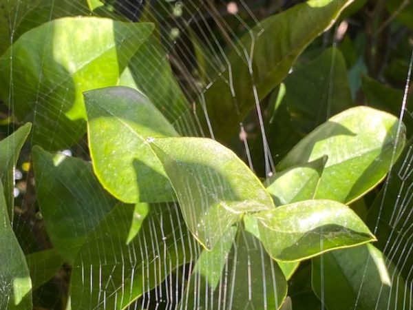 2. Angesichts des unteren Fotos möchte ich auf die zwiespältige Rolle der Spinnennetze hinweisen. Einerseits sind sie für viele ein Gräuel. Andererseits bringen sie in viel Ansichten eine besonders ästhetische Note – wie auch hier.