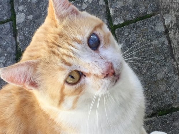Das eine Auge sieht eher wie schwer krank oder schon blind aus, aber das Tierchen scheint unendlich lieb!!