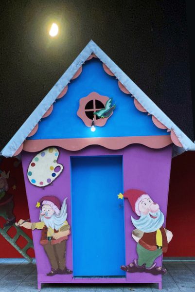anstellen, was es damit auf sich hat. Ist Maria, müde vom langen Marsch, ins Träumen gekommen und sieht vor sich einen Weihnachtsmarkt 2021 Jahre nach dem Ereignis? Und stellt sich vor, ihr Neugeborenes in diesem Zwergenhaus unterzubringen, fern von Volkszählungen und Kindermördern, obrigkeitlichen Anordnungen und schrecklich-schönen Weissagungen? Einfach nur ein gewöhnliches Menschenkind geboren zu haben, das über die weißbärtigen Zwerge lacht? Ich würde es ihr nicht verdenken.