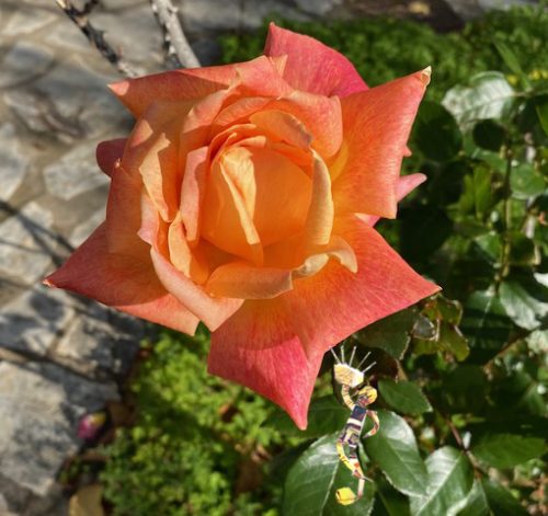 Die obige Zeichnung ist ein altes Selbstportrait. Ist gar nicht mal so schlecht, ABER die Nase ist total verkorkst! Das Foto der Rose ist ein paar Tage alt. Schön war sie da, ABER inzwischen beginnen ihre Blütenblätter die Spannkraft zu verlieren und werden auch von Insekten angeknabbert. Im Hinterkopf höre ich Dora. „Gehts noch? Wie wäre ein Tag ohne ABER, liebe Gerda?“