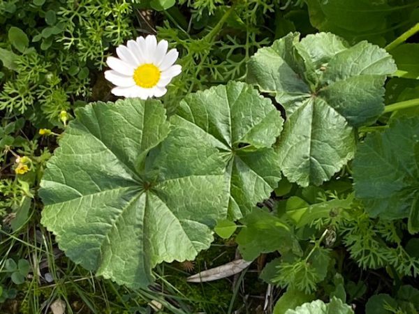 ein Pestwurz (oder Huflattich?), der sich eine Margarete hinters Ohr gesteckt hat, und – ja, warum nicht? – ein Pilz, in dessen regengetrübtem Auge ein Blütenblättchen schwimmt.