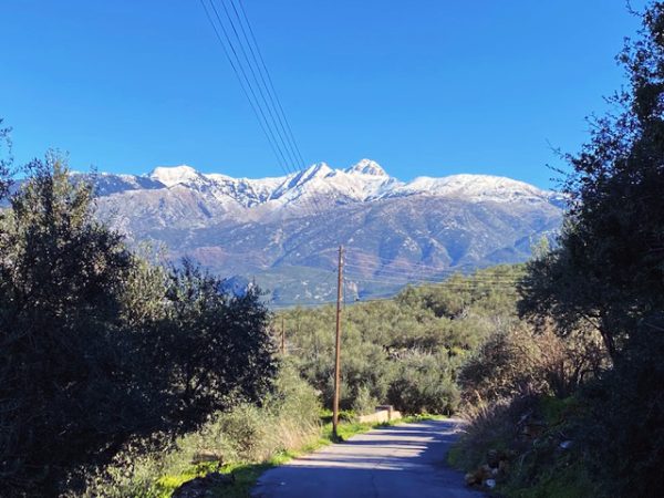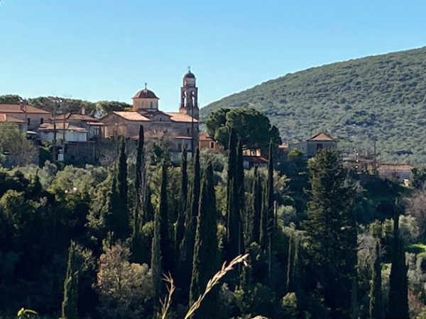 Wir blicken hinüber nach Stavropygio, wo wir unseren Spaziergang begannen. In der Ferne ist das Häusermeer von Kalamata zu erahnen.