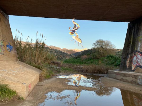 Irgendwie beruhigt es mich, dass auch Dora ein bisschen verrückt ist. Immer nur die Gute Dora spielen – nein, das wäre doch allzu brav. Heute turnte sie über die olle Betonbrücke und ließ sich in den Tümpel darunter fallen. Ich schrie kurz auf – da flog sie schon wieder nach oben und ließ sich erneut mit einem Juchzer von der Brücke fallen. Die Schneeberge weit dahinten glänzten auf