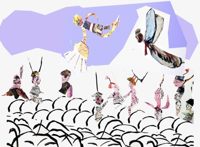 „Also das war so“, beginnt Dora ihre Erzählung. „Ich fliege durch die Gegend und halte Ausschau nach Empfängern meiner Gaben. Da sehe ich ein Feld aus Wellen, drauf sitzen Menschen, jeder mit einer Antenne ausgestattet. Sie sehen ziemlich abgeschafft aus.