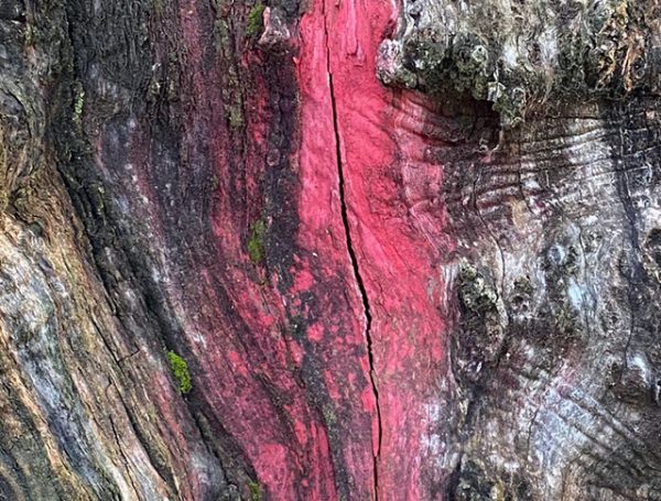 Montags ist Fototermin: Baumstamm, rot markiert (kleine Beobachtungen)