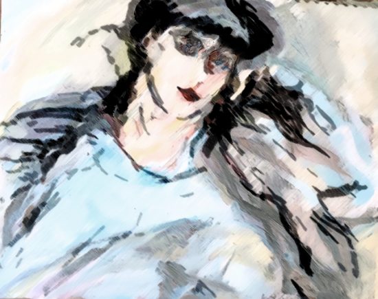 Durch das Überblenden von Gemälde und Zeichnung sowie digitale Bearbeitung schuf ich die junge Dame etwas um. Stil 20er Jahre des vorigen Jahrhunderts.