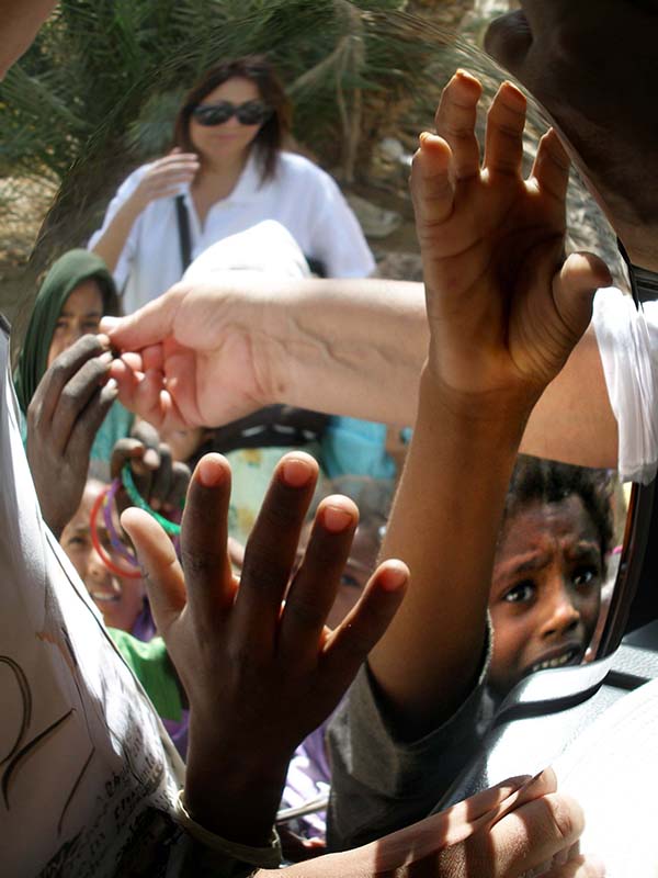 Am eindringlichsten gerade auch in Gegenüberstellung zu deinem Foto, liebe Myriade, scheint mir ein Foto von Händen, das ich bei einem Halt in der ägyptischen Wüste machte. Das Foto ist bearbeitet. Manche werden sich dran erinnern. Hier kreuzen sich die Hände der spärlich Gebenden und der sich flehend Entgegenstreckenden. Es gibt auch eine Begegnung von Händen, eine leise Berührung im Geben und Empfangen.