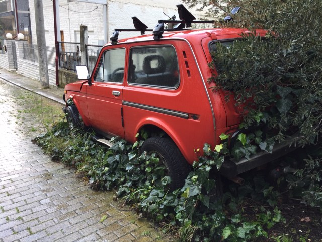 Ein Auto, das von Efeu überwachsen auf der Straße parkt, ist schon etwas merkwürdig …