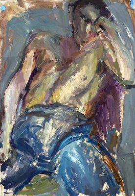 Gerade deswegen gefallen sie mir besonders gut! Mir gefällt der junge Mann mit freiem Oberkörper und Jeans. Es könnte sein, er macht ein Nickerchen aber es könnte auch sein, daß er nachdenklich ist.