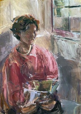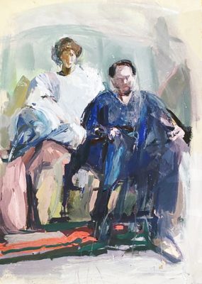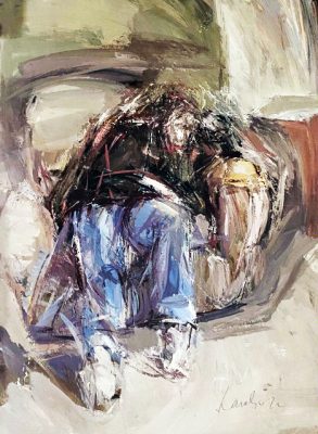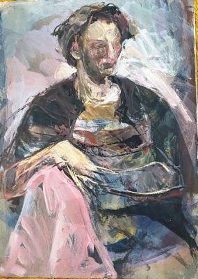 Eine merkwürdige Einstellung hat Dora. Ich bin empört. „Ich soll verschenken, was mir nicht gefällt? Ja, spinnst du? Das wäre ja eine Beleidigung für die Beschenkten!“ Aber Dora widerspricht mir entschieden. „Glaubst du, dein Geschmack ist der Goldstandard? Was dir nicht gefällt, kann ja anderen durchaus gefallen. Ich nehme das orange, es passt farblich ausgezeichnet zu mir. Und darauf kommt es an! Außerdem ist die junge Dame hübsch und elegant und fletzt sich nicht so im Sessel wie andere, die du gemalt hast.“