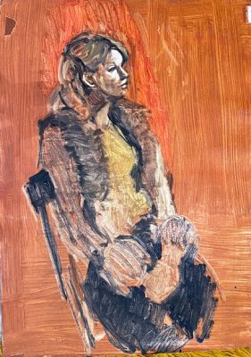 Ich habe einen Stapel großer grauer Pappen hervorgezogen, auf denen ich vor vielen Jahren Farbstudien mit Pigmenten und Kleister gemacht habe. Als ich gerade dabei bin, die Portraitskizzen von den anderen zu trennen, guckt Dora zur Atelierstür herein und fragt: „Kommst du mit auf einen Bummel?“ – „Ach nee, lass man“, sage ich, „Ich muss hier ausmisten. Das meiste von dem alten Zeugs muss weg. Aber ich kann mich nicht entscheiden,“ – „Ich helfe dir!“ bietet Dora sich spontan an.
