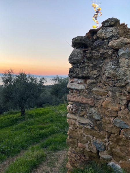 Kaum kommen wir an einer Mauer vorbei, steht sie schon oben und verkündet, was man von da oben alles sehen kann, was mir als armseliger erdgebundener Fußgänger ganz verborgen bleibt. Ich gönne ihr den Spaß und lasse sie gewähren…