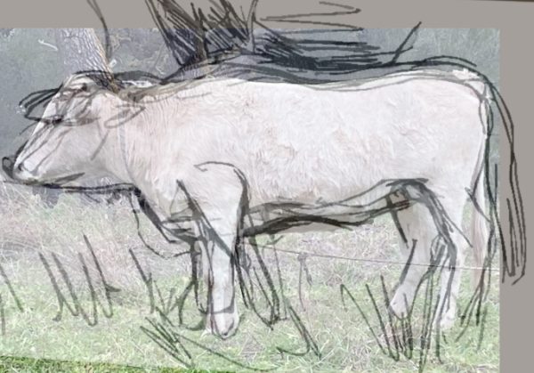 Weiße Kuh im Klostergelände (tägliches Zeichnen)
