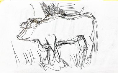 Weiße Kuh im Klostergelände (tägliches Zeichnen)