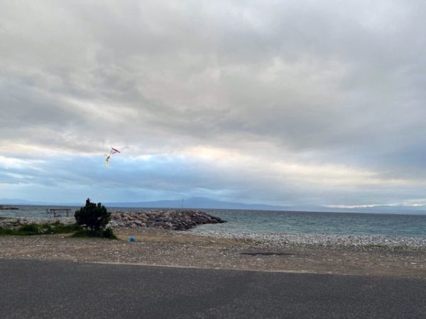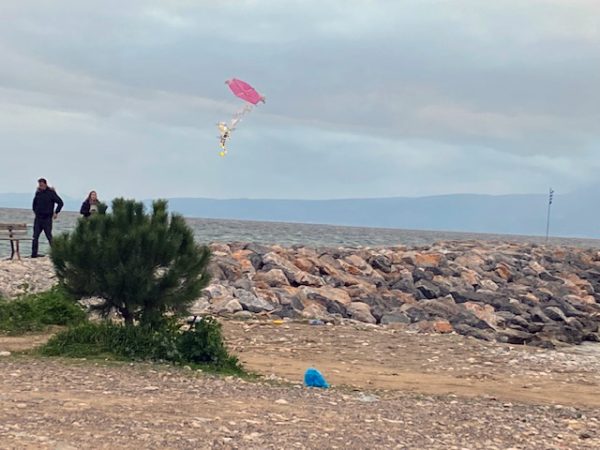 Was ist passiert? O, nichts besonderes. Nur dass Dora doch noch ihren Flug mit dem Drachen bekommen hat. Denn als wir in die Stadt fuhren – es dämmerte schon sehr und regnete leicht -, hielt ich an einem Müllcontainer, um Abfälle zu entsorgen. Wie ich mich umdrehe, sehe ich Dora durch die Luft sausen und sich an einen Drachen hängen. Den hatte ein Papa, der den Kummer seines Sohnes nicht mit ansehen konnte, dass es mit dem Drachensteigen nicht geklappt hatte, nun doch noch – Regen hin, Nacht her  – in die Luft gebracht. Also der Papa hat den Drachen, nicht den Sohn in die Luft gebracht.