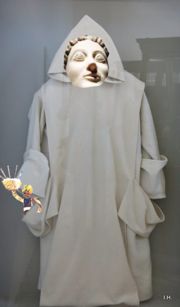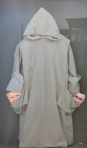 Offenbar kam es hier auf die Individualität des Trägers nicht an, jeder konnte hineinschlüpfen und darin verschwinden. Gut oder böse, arm oder reich, blond oder schwarz, Männlein oder Weiblein oder irgendwas dazwischen  – egal, die Hülle würde alles aufnehmen. Und da heute der Tag der Frau ist, dachte ich: wie diese islamischen Frauengewänder, deren Inhalt dem allgemeinen Blick verborgen bleibt und sich nur dem Besitzer offenbart. Er allein hat das Recht, den Inhalt zu kennen und zu genießen.