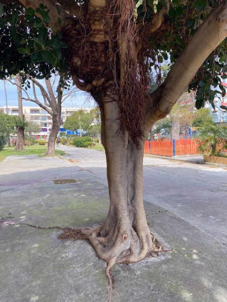 Kalamata: Blüten, Stämme und eine Hafenskizze (kleine Beobachtungen)