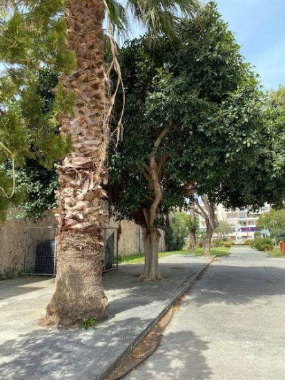 Kalamata: Blüten, Stämme und eine Hafenskizze (kleine Beobachtungen)