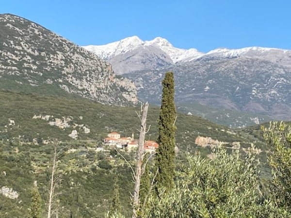 Hier habe ich die Berge und das Dorf Orovas fotografisch herangezoomt.