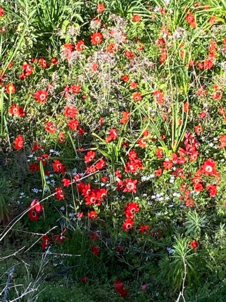 Die ersten roten Anemonen blüten schon im Februar, und jetzt sind alle Hänge rot gesprenkelt. Die eine und andere Mohnblüte habe ich auch schon gesehen, aber es war recht kalt, und so zögerten sie. Sie sind halt sehr empfindlich.