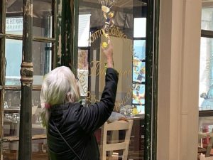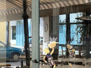 Ich habe heute zwei Bilder mit Spiegeleien zu „April April“ gepostet. Es sind unschuldige Tricksereien, die mit bescheidenen Kenntnissen von Fotoshop leicht herzustellen sind. Dass ich Dora samt ihren Doppelgängern ins Foto eingefügt habe, ist offenkundig. Wie aber ist es mit mir selbst, die per Rückenansicht im Foto zu sehen ist? Es war niemand dort, um mich zu fotografieren, und ein Selfie aus dieser Position könnte ich nicht schießen.