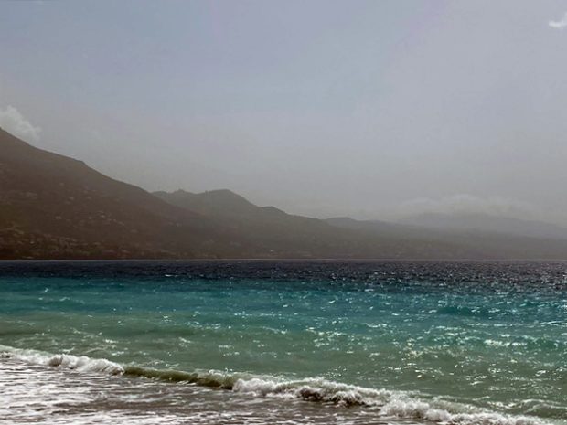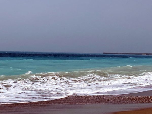 Ein starker Wind hat heute einen Teil des Wüstensands, der uns seit Tagen das Licht wegnimmt, davongetrieben. Ob er nun neuen Sand bringt? Vielleicht, Wärme bringt er auf jeden Fall, denn er kommt aus Südwest. Wie auch immer: Das Meer, die große Waschmaschine, hat sich ans Werk gemacht. Ich atme tief durch.