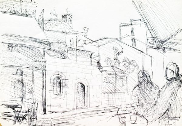 Diese Zeichnung vom Kirchplatz ist vom Juli 2020