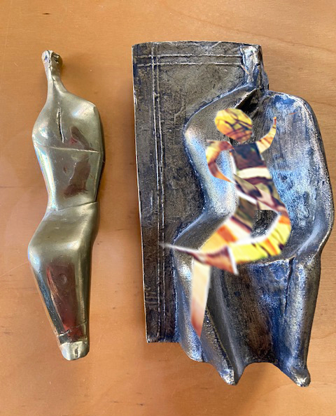 Da macht sich auch Dora auf die Suche nach einem bequemen Plätzchen. Sie entdeckt das Bronzepaar, das ich vorhin in der Hand hielt. Zuerst probiert sie den Damenschoß aus.