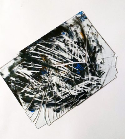 Kürzlich besucht mich ein zehnjähriges Mädchen in meinem Atelier. Es geht gleich zu meinem letzten Scherbenbild …